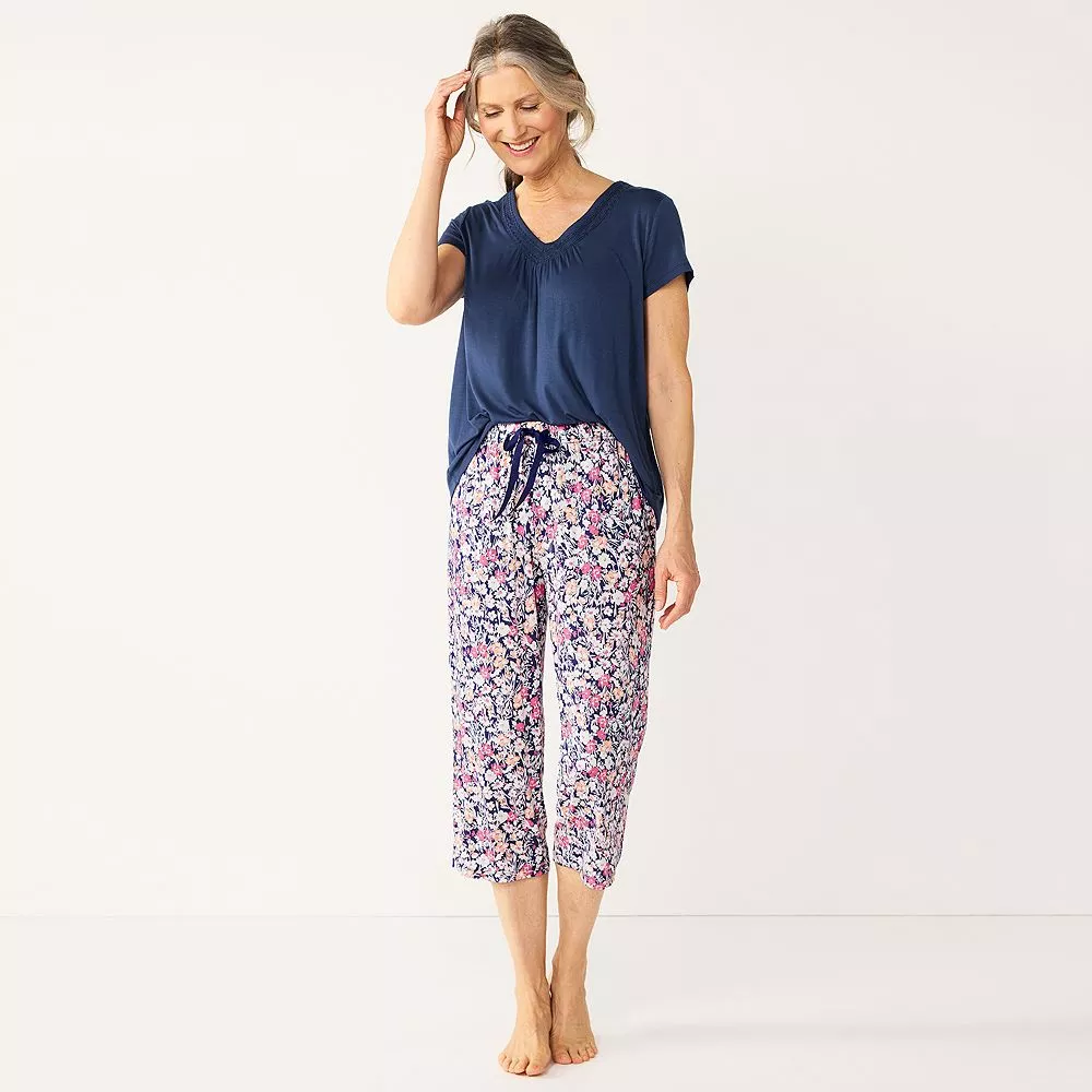 Drift off to sleep in complete comfort while wearing this matching women’s Croft & Barrow short sleeve pajama top and cropped pajama pants set.